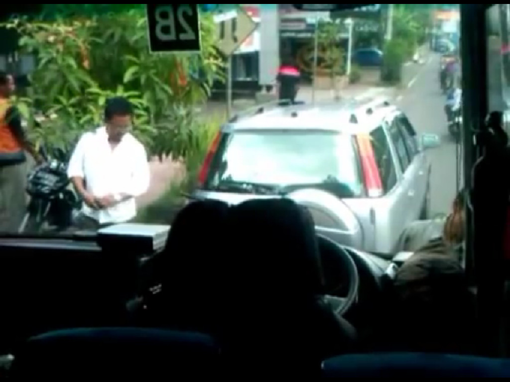 Tetapi yang terjadi adalah dua pengemudi (Honda pakai baju putih, TransJogja pakai baju batik dan topi kupluk) tersebut saling senyum.Sopir TransJogja dengan gaya polosnya menjelaskan apa yang ia lakukan ketika terjadi kecelakaan, sementara pengemudi Honda tersenyum sambil sesekali mengamati bagian belakang mobilnya yang mengalami kerusakan.